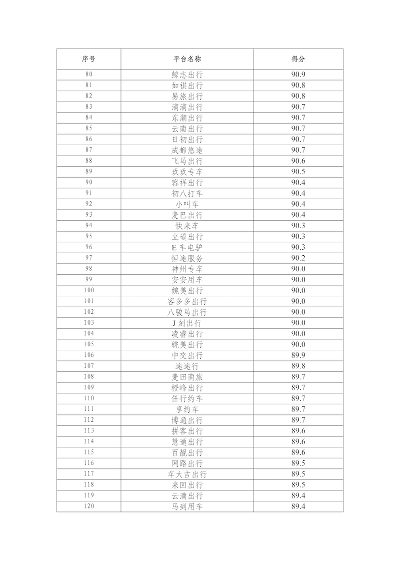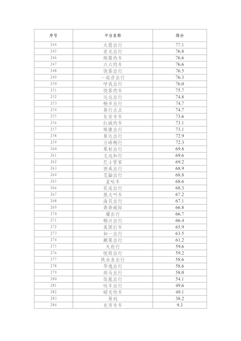 2026年2月,网络预约出租汽车监管信息交互平台共收到284家网约车平台公司传输的数据,按数据完整性、规范性、及时性、真实性等指标评分共100分计算,平均得分为90.3分,各网约车平台公司数据传输质量具体情况附后。